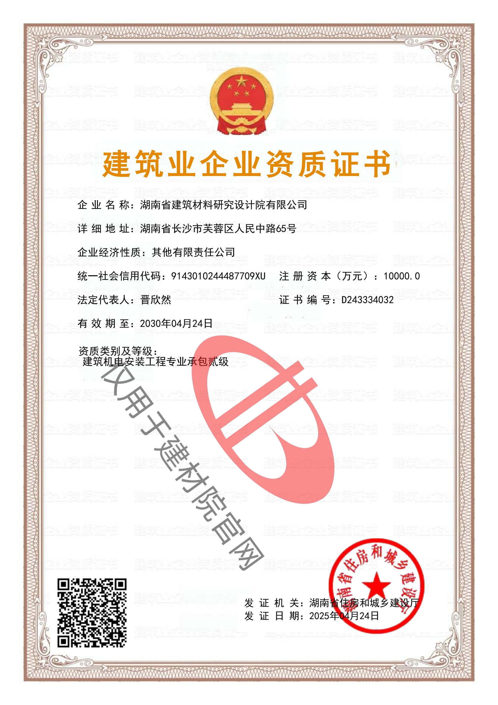 湖南省建筑材料研究設計院有限公司的前身為湖南省建筑材料研究設計院,成立于1958年,是1993年全國首批榮獲國家建材行業設計、工程總承包甲級資質的四個科研設計單位之一。